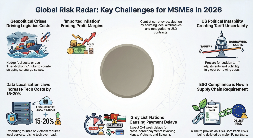 For MSMEs, the primary danger in 2026 is “Imported Inflation.” When a local currency devalues, the cost of raw materials, software licenses (typically priced in USD), and energy spikes instantly. This creates a “margin squeeze” where production costs rise in real-time, but local consumers’ purchasing power is shrinking, preventing businesses from raising prices without losing their market share.